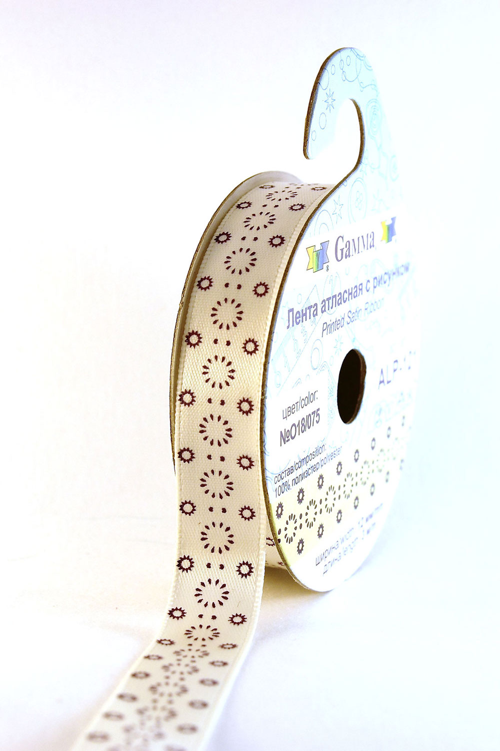 Лента атласная 12 мм ( 1/2 ") с рисунком "Gamma" ФАСОВКА 3 м D11/061 св.коричневый/св.св.бежевый
